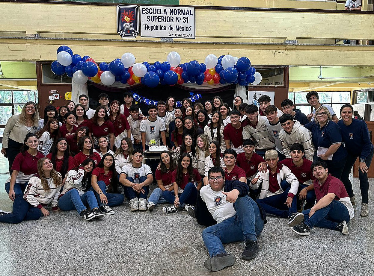 Con el objetivo de difundir la historia de la escuela y su lugar en el desarrollo local y regional, como también fortalecer el sentido de pertenencia institucional, el equipo directivo coordinó una gran cantidad de acciones que involucró a los tres niveles educativos. El Nivel Primario confeccionó carteleras y marcos para tomar fotografías con los docentes del área de tecnología. Y los alumnos de 5º grado confeccionaron el escudo con su maestra de inglés. El Nivel Secundario, además de una cartelera, aportó a través de los alumnos de 5º año la creación de contenidos para redes sociales sobre la historia de la escuela durante toda la semana. Y una torta de utilería con los profesores del departamento de idiomas.***El miércoles 9 de Abril, los alumnos del Profesorado de Educación primaria compartieron una charla a cargo de la ex alumna Lidia Sosa de Lastre, maestra normal nacional promoción 1955. Esta referente permanente de la historia local, disertó sobre el origen y la trayectoria de la Escuela Normal, y sobre sus experiencias como ex alumna y docente.***El jueves 10, la mediateca de la escuela se llenó de historias, voces, risas e intercambios generacionales con la visita de Abuelas Cuentacuentos. Los alumnos de 1er grado compartieron durante dos horas lecturas y narraciones orales que expandieron las fronteras de lo posible e invocaron la creatividad e imaginación de los más pequeños de la escuela.***El acto aniversario tuvo lugar el viernes 11 al inicio de la jornada. Estuvieron presentes autoridades del Ministerio de Educación de la Provincia y del Gobierno de la ciudad. Con el marco del telón realizado por los profesores de matemática, ingresaron las banderas de ceremonia, se izó la bandera en el patio y los presentes cantaron el himno nacional. El maestro de música Mariano Sanz interpretó con su voz el himno a la escuela, sumando gran emotividad al momento. Tras las palabras de la Subsecretaria de Educación Secundaria del Ministerio de Educación, Profesora Mariela Bossio, y de la Rectora Profesora Sonia Silvestrini, se retiraron las banderas y llegó el momento de la explosión de la alegría contenida. La alumna Victoria en representación del alumnado, las autoridades y los equipos directivos soplaron velitas y todos los presentes cantaron el “feliz cumpleaños”. Finalmente, el presidente de la cooperadora sorteo una remera entre las familias que tienen la cuota al día.***La mañana fue muy animada y estuvo marcada por muchas manifestaciones de cariño hacia la escuela. La cooperadora donó un pasacalle y los asistentes escolares lo colocaron en la explanada del edificio. En el hall de ingreso, la biblioteca escolar expuso registros y ficheros antiguos y la rectoría instaló un área audiovisual para reproducir un video sobre la historia institucional. Todo esto junto a la gran torta blanca, azul y roja que fue destinataria de todas las miradas y sonrisas.***El Centro de Ex alumnos residentes en Santa Fe “Juan Mantovani” envió sus saludos al igual que la ex Rectora Irma Risso de Habichayn. Y miles de anécdotas circularon durante la mañana en los pasillos y aulas mientras la promoción 2025 acondicionaba las instalaciones para actividades recreativas.***A partir de las 11 de la mañana, los alumnos de nivel secundario participaron en trivias y juegos, y cerraron con el desfile de las remeras de promociones anteriores.